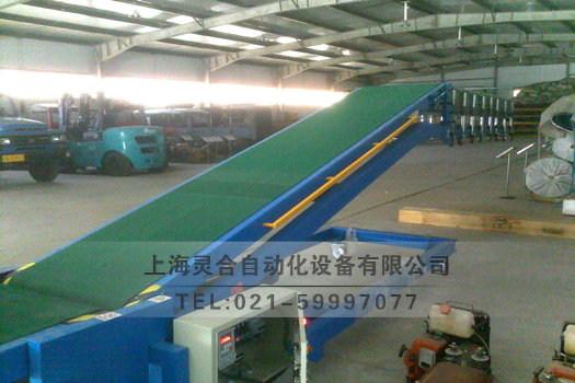 Z型爬坡装车输送机使用前置伸缩辊筒线搭配使用装车,更省力